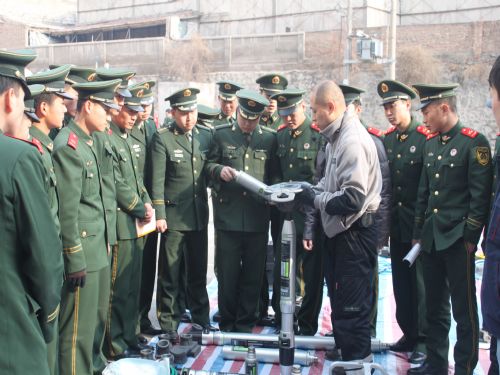 我公司技術人員在蘭州市消防特勤大隊為消防官兵現場顯示、培訓我公司所供其他設備。