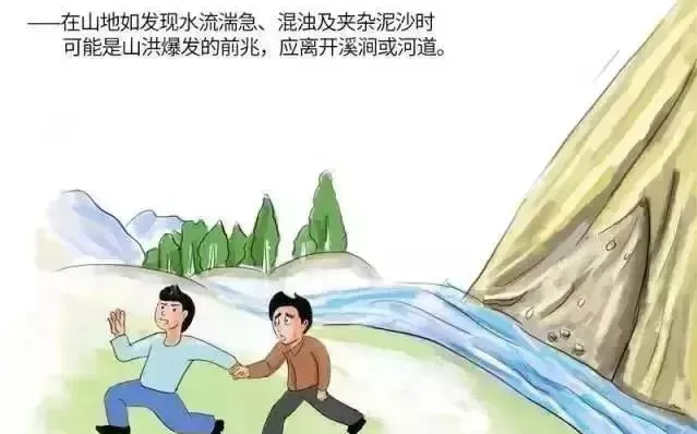 發現泥石流襲來時,要馬上向溝岸兩側高處跑,千萬不要順溝方向往上游或下游跑。